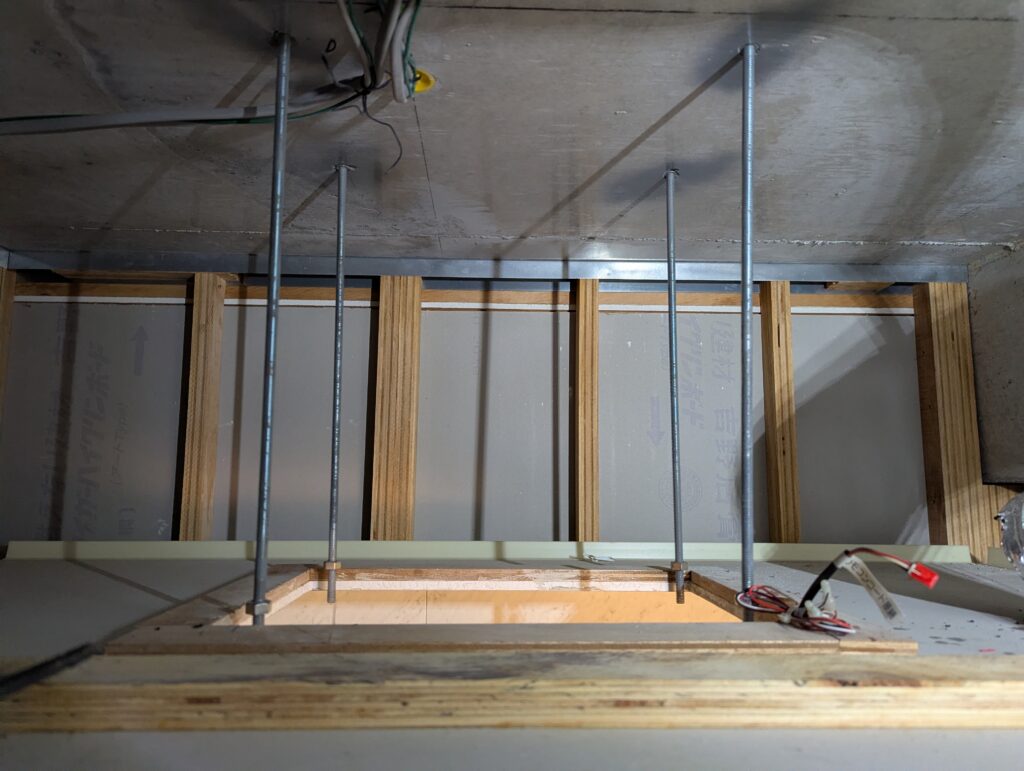 今回の物件は、吊り金物の位置が合わなかったため、調整しました。